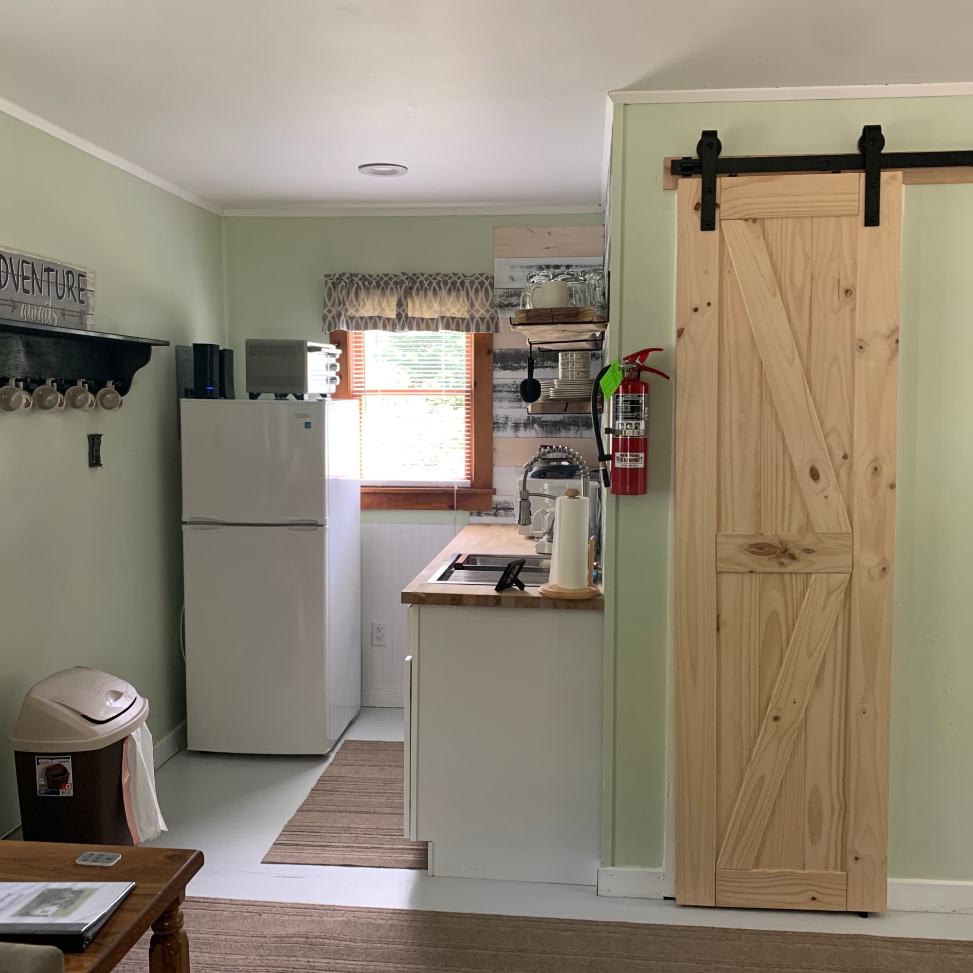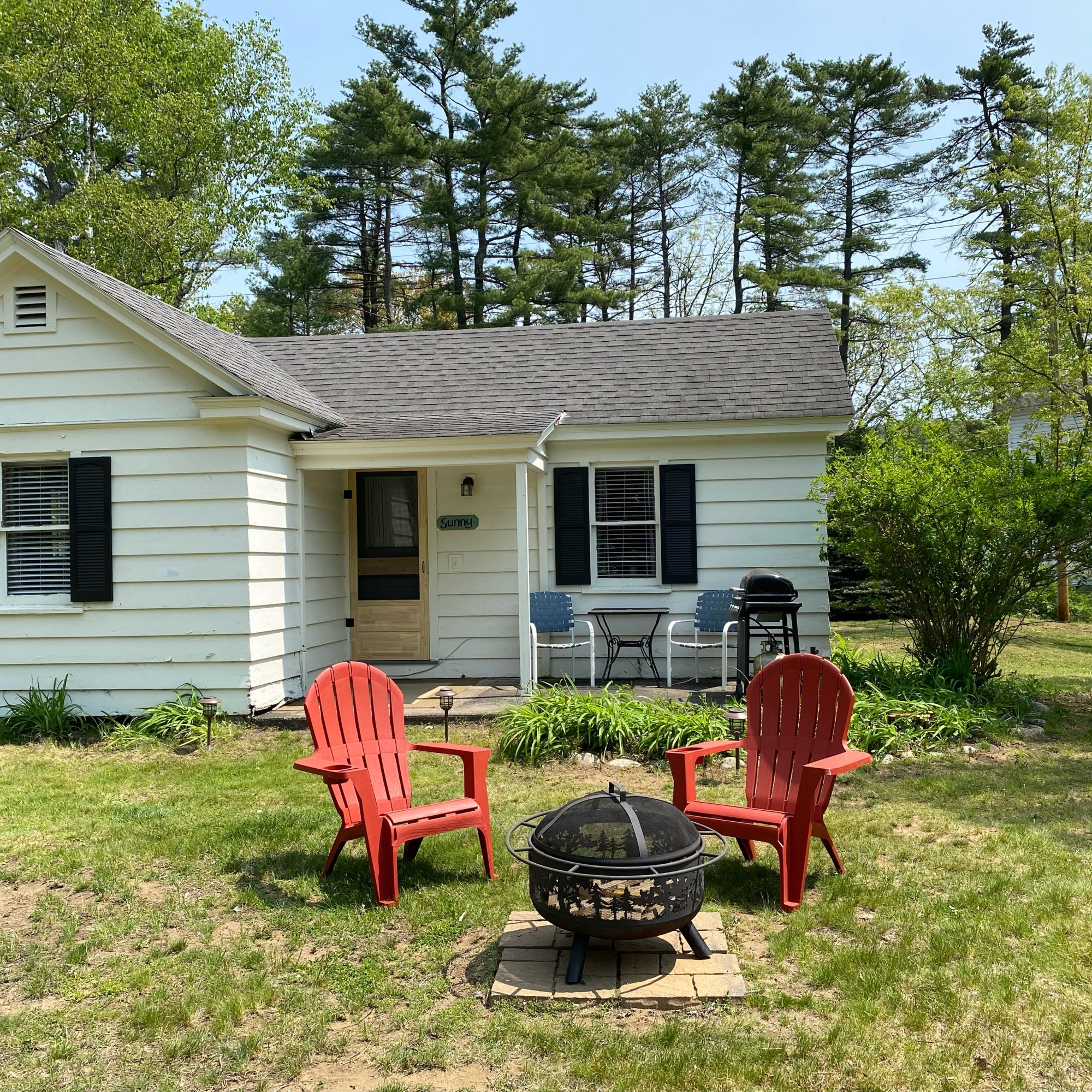 Sunny Cottage, one of the 5 cottages at Cozy Nook, has one bedroom with a King Size bed and additional sleeping for one adult (2 small children) on a pull out couch. Kitchenette, which includes refrigerator, toaster oven, hot plate, drip coffee maker, and microwave. Also to enjoy is your own fire pit, outside grill and lots of outdoor space to enjoy the Adirondack air.